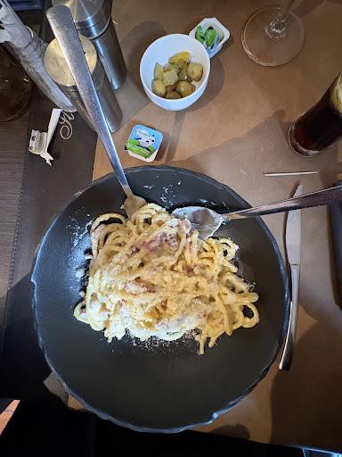 Read moreJâai hĂ©sitĂ© Ă mettre 4 Ă©toiles. Lâaccueil est chaleureux, le rapport qualitĂ©-prix intĂ©ressant (pas trop cher), accĂšs pour les mobilitĂ©s rĂ©duites (mais un doute que la toilette soit accessible au fauteuil). Le temps de service est un peu long, la dĂ©co nâest pas romantique ou recherchĂ©e, la toilette est unique et pourrait ĂȘtre rĂ©novĂ©e (ceci dit rien Ă dire sur la propretĂ©, toilette nickelle). Niveau du repas, spaghetti vongole pour Monsieur (manque dâail et de goĂ»teux), spĂ©cialitĂ© du mois pĂątes Ă lâasperge et chaire Ă saucisse (trĂšs bon, mais un peu trop salĂ© ce qui masque au fur et Ă mesure le goĂ»t de lâasperge). Petites olives offertes pour lâapĂ©ro (trĂšs bonnes) et les petits pains dâaccompagnement dĂ©licieux đ€€. HĂąte de goĂ»ter les pizzas et de mettre jn nouvel avis...