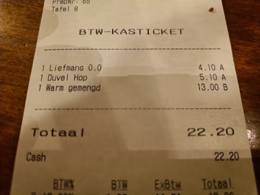 We waren in de namiddag iets komen drinken. Er was blijkbaar geen plaats om iets te drinken terwijl er plaats genoeg was en nog tijd genoeg was voor de reservaties van het avondeten. We moesten al lang wachten voor we de kaart kregen. Na enige tijd konden we eindelijk onze bestelling doorgeven. Wij namen elk een drankje en vroegen een koude portie gemengd. We ontvingen onze drankjes en daarna werd onze een portie gemengd (Warm) gebracht. Een foutieve bestelling dus. Ik wou initieel niet moeilijk doen en ik wou ook niet dat de portie werd weggegooid dus heb ik het personeel erop attent gemaakt dat we initieel een koude portie gemengd hadden gevraagd. Op dit moment zou je toch kunnen verwachten dat het personeel de prijs aanpast naar wat we daadwerkelijk hadden besteld. Even goed hadden we de warme portie kunnen terugsturen en een koude portie laten bijmaken. Uiteindelijk kregen we de rekening en bleek dat de portie gemengd € 13 kostte. Een beetje schandalig wat we voor die prijs voorgeschoteld kregen. Ik denk dat de foto voor zich spreekt. Daarbij was de portie gemengd ook veel te ver gebakken. En om het dan helemaal af te maken kwam de prijs op de menukaart ook niet overeen met de prijs op de rekening.