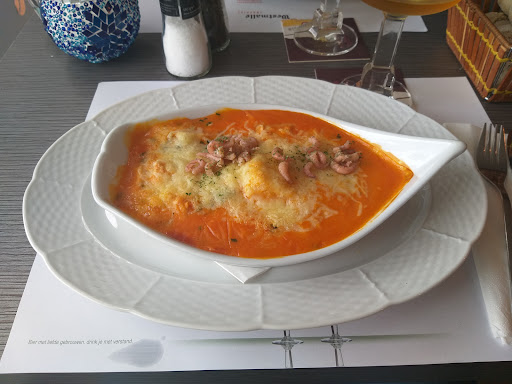 Read moreQuel service ! La serveuse ne parle pas français et ne veut même pas essayer, mon compagnon commande un smoothie (il y en a 4differents sur la carte), on doit lui répéter trois fois en lui montrant du doigt sur la carte, il opte pour un 'strawberry fantasy', soit banane et fraise. Il y a de tout dans ce smoothie (notamment de la mangue et du jus d'orange) mais pas de banane. Heureusement qu'il n'est pas allergique à d'autres fruits... Écrasés par le soleil, nous glissons à la table à côté pour nous mettre à l'ombre. Mon compagnon oublie sa petite pochette sur la chaise. La serveuse l'a ramassée et l'a mise de côté... Au lieu de nous prévenir. Angoisse. Nous demandons à la serveuse, dans un Flamand approximatif. Ah oui, c'est bien elle qui l'a prise. Il y avait 5 tables occupées, comment n'a-t-elle pas eu le réflexe de nous le rendre directement... Le repas arrive, pas de cuillère pour servir les frites ou pour le jus des moules, pas de mayonnaise à table, les moules à 23€ avec du pain (!!!), Il fallait payer un supplément de 3€ pour les frites, pratique plus que douteuse, surtout qu'au final nous n'avons pas eu de pain à table... Bref une addition de plus de 85€ pour deux cassolettes de moules, un spaghetti bolo et trois boissons (le smoothie, un quart de vin et un gin tonic) Bref, un établissement qui profite de sa position stratégique pour offrir un service médiocre et de la nourriture...