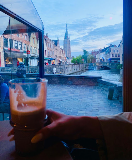Read moreThis little cafe by the canal has a lovely view right down the canal and is especially good if you like people watching! The atmosphere is cosy and friendly and there's a free jukebox. They only serve drinks and like most cafés in Bruges, their coffees and hot chocolates are very small by British standards, but they do all come with a really tasty cinnamon wafer and a square of chocolate, which is a bonus. They are more reasonably priced than the tea rooms on the Markt, but are equally tourist friendly in terms of views. Cash only,...