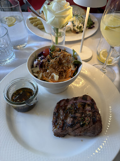 Now, let's talk about the star of the show: the food! Both my spouse and I opted for the chateaubriand, and oh my goodness, it was divine. Perfectly cooked and accompanied by a delightful side salad, it was a true masterpiece. I paired mine with a baked potato, while my better half went for the gratin – both were heavenly.