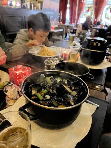 One of the worst restaurants I've ever been to. We waited for 1h and a half with 2 babies to get served mussels shrimp crockets and a steak ordered rare. Everything was served at once after more than 1h and a half. Mussels were ok (not bad but definitely out of interest), shrimp crockets also on the same page as the mussels. And the steak was way overcooked, almost done but we had already wasted too much of our time in this trap restaurant. I then asked to get beers being offered and the owner just told me that it takes time to cook stuff, yes, true but it could have been good dishes in half of that time. Waiter was also laughing at me when I left in a disrespectful manner. Everything is also way overpriced. I don't get how they can get a rating this good. I don't recommend to anyone. Note that we also had to change our baby diapers in the middle of the restaurant, on the same place where they hold knives and forks; just a few centimeters away so I won't be surprised if there was also any kind of hygiene issue. Everything is way overpriced with a...