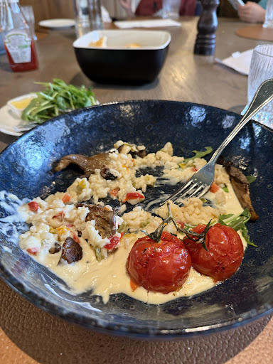 My wife first settled into a table out front while I went to use the loo. While I was away, the waiter rudely tried to get my wife to leave and told her they are not serving people who only want drinks unless we are ordering food. After he couldn't give my wife a good reason for why, he went in and came back and said that his manager begrudgingly said "it was ok to serve us only drinks". Meanwhile we could see tons of other people having only drinks around us and not eating any food.