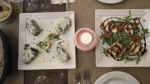 Visited here on a Sunday night in in May 2023. We did book beforehand but probably could have got a table ok walking in. We ordered the halloumi and feta tapenade starters, large greek salad, peppercorn steak for mains which came with fries and also ordered a side of oven potatoes. There was a slight wait between starters and mains but all was delicious. I would definitely recommend the oven potatoes, they were really creamy and had lovely seasoning. Great...