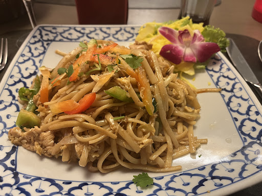 Food was bland and would be forgettable if it wasn't overpriced. They didn't seem to even have a spice scale. Everything was unspiced, but we ordered it hot. Instead of adding it while cooking, they brought dried chili. Sadly even it wasn't spicy. After three spoons of it added nothing to my pad thai, I tried a spoon of it directly. Nothing. It must have been sitting around for years. The massamun curry was really salty. The prawns in the tom kha were perfect though (of course, only after they brought that instead of the tom yum which they brought by mistake).