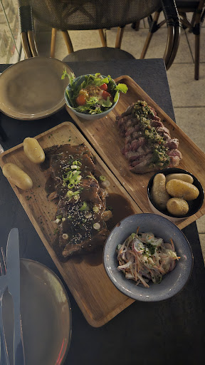I’ve visited this rooftop bar several times for their cocktails and mocktails, which are always excellent. The vibe is charming, and the view is stunning. However, this time we decided to try the food, and it was a major disappointment The Pinsa Regina tasted like a frozen pizza. The dough, particularly the bottom, was undercooked-moist and almost watery. The Brugge oud cheese balls were clearly frozen and lacked flavor . The chicken karaage was inconsistent :/ some pieces were chewy, while others were overcooked. The most disappointing dish was the Macedonian minced beef (qebapa); it was so tough that even cutting it with a knife was a struggle. For a dish that’s supposed to be tender and flavorful, this was a letdown.