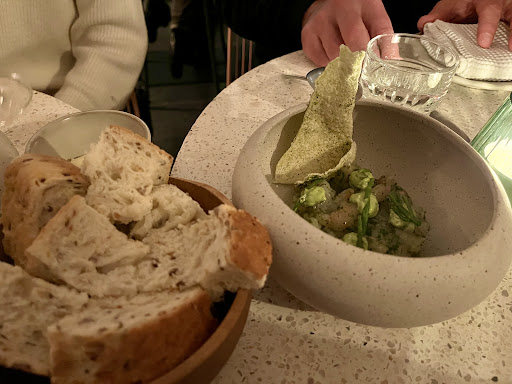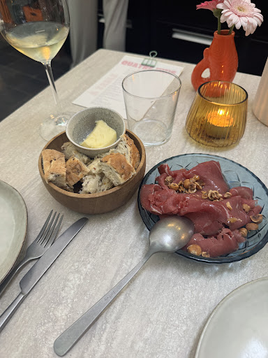 Read moreQuatre Vins is a restaurant located in the historic center of Brugge (Bruges). There are menu options in which guests select a number of dishes (basically there is no distinction between starters and main courses as the dishes are small, like tapas). The dishes are intended to be shared. This concept is ideal for those who want to try as many dishes as possible to experience the skills of the chef as everything was delicious. The sharing food / small concept is not for those with big appetites who want to eat from a big plate. As for the wine, there is an original wine list and the owners are happy to share their knowledge of wine and recommend something for you, including one of the orange wines… Service was extremely helpful and attentive, the food was delicious (although left us wanting more so we ordered dessert afterwards)....
