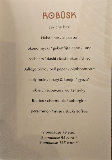 Read moreEvery meal was a pleasant surprise, very well excecuted, beautiful to watch, and a delight to taste. I very much enjoyed all 10 courses. There are many great restaurants in the center of Bruges. Robuusk is a little bit outside the center, but really worth visiting. I highly recommend this place to all foodies or people that appreciate...