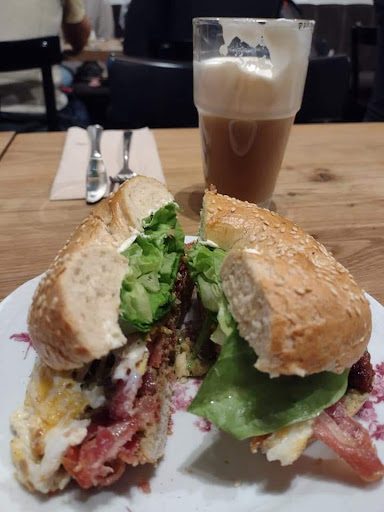 Its not cheap, but it's not expensive either (again, cafe savoy would be 10x the price) and the quality of the bagel sandwiches is unparalleled. Astounding food. The big glass of latte is welcoming too, rather than the thimbles of coffee other places provide.