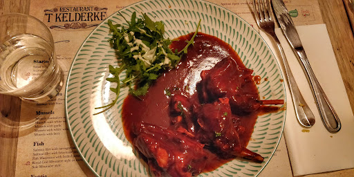 Read moreGreat place, very friendly and attentive staff, answered all our questions very respectfully and in a very good english. Orders came out very fast considering the fact that both the terrace and the downstairs restaurant were pretty full (under 3 minutes for our drinks, 5 minutes for the first course and about 8 to 10 minutes for the main one). We both had the onion soup for the first course, which was rich in taste and had great consistency, we left the bowls clean and shiny :) That was our mistake, didn't leave much room for the main course. That's why i consider that the almost 10' break between courses actually helped a little. For the main courses, my husband had the carbonade flamand- very tender beef and excellent sauce (his words, not mine ;) ). I had the fish waterzooi with boiled potatoes... absolutely delicious!! Mussels and fish cooked perfectly, also tender and fluffy, very (and i mean VERY) tasty sauce, even looked up the recipe. As i said before, i was already full... but that perfect combination of tastes made it almost impossible for me to stop eating it. Overall, we had a perfect meal in this restaurant, prices not as high as the other restaurants from grand place and the staff made sure that out time spent there was also very pleasant. We'll gladly come back to 'T Kelderke next time we're in...