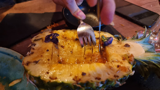 Read moreIt took 1 hour to serve us the food. We noticed there was only one waiter/bar tender for drinks and service, and we assume they only had one person cooking. The plates were tasty, but a bit strange that one of them came in a pineappke, but the pineapple was completely full (so no whole inside to fit in the food). So the good was literally on top of half pineapple, which was very hard to cut! Interesting is that the dish description said it contained "dés d'ananas ". The place is nice, but not cozy.. it looks a bit lack of "love".