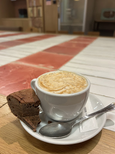 Read moreVery friendly barista, professional and kind, was offered a piece of cake with my coffee, coffee was a bit on the bitter side, don’t know if it wasn’t extracted to perfection or the beans were a dark roast, but I’ve seen better tasting coffee, yet it was still pretty good. Still a very good place overall, very unique in terms of design and atmosphere and the prices are definitely on the affordable side for Brussels (3.6 for a cappuccino with a side of cake, you cannot find cheaper prices for decent...