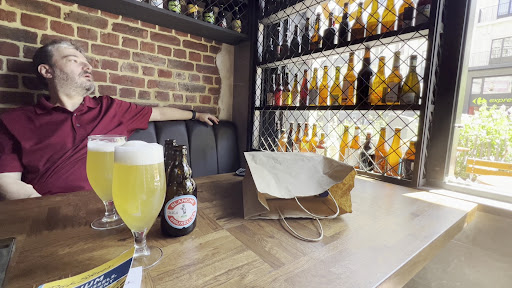 Read moreIf you're looking for a bar specialized in local Belgian and international beers: look no further, this is it. A huge choice of beers on offer (over 2000). A very nice selection of beers on tap. If you don't know where to start: there's a sampling option available and skilled barkeepers who can give you advice, depending on your taste. It's cosy, family friendly and for sport's fan there's a tv. On sunny days there's a nice terrace outside on a traffic free road. Personally I recommend to try the local Belgian 'white' beer: Hoegaarden (see photo) which is excellent to cool you off on hotter days and it's served (as it should) with a...