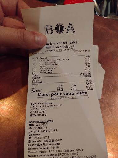 SUITE AU COMMENTAIRE DU PROPRIÉTAIRE : Déjà avec la tonalité de votre réponse je vois que je ne mettrai plus jamais mes pieds dans votre établissement. Vous parlez de 30000 chansons mais lors de notre visite nous n'avons trouvé aucune chanson de Stromae (si vous parlez de Fatal bazooka ça par contre y était mais pour moi non merci) et d'autres chansons cultes n'y était pas non plus. Pour la surveillance, je ne parle pas des caméras mais de votre passage dans notre local réservé qui était excessif (4 fois !!! Avec un sourire hypocrite et un "Tout va bien?"). Enfin, je ne vois pas pourquoi je vous appellerai vu que vous avez bien répondu ici et vous avez eu la possibilité de vous exprimer. Je ne me cache pas derrière l'anonymat de l'internet, je trouves que j'utilise le plateforme à bon escient. C'est à ça que sert Google avis ! A faire des commentaires, qui ne seront pas effacés par les propriétaires et vus par le grand public, sur les...