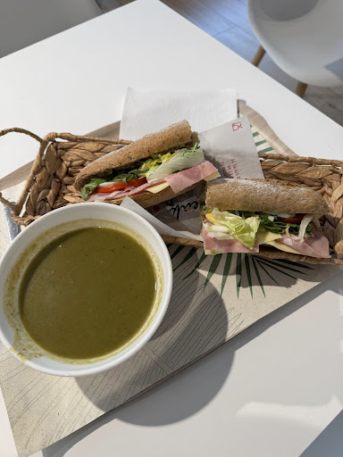 I chose the breakfast menu (soup + sandwich), which was both refreshing and affordable. Everything tasted fresh and seemed to be prepared right in the store. The atmosphere was cozy and inviting, with a beautiful chandelier in the center adding a special touch.