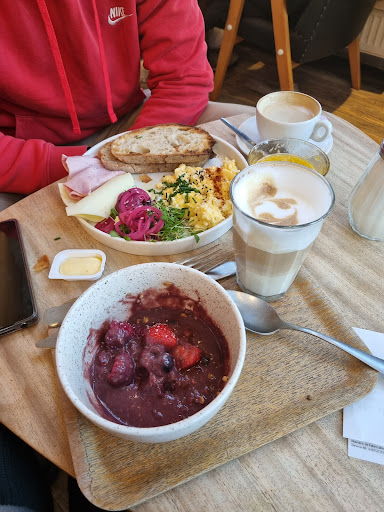 Good place, but I don't understand all of these 5 star reviews. We ordered the acai bowl, the sablon brunch, two coffees and an orange juice. FYI the pic is from halfway through the meal. The acai bowl was good, but nothing special: just fruit, smoothie and granola. Could've made it myself. Also, the smoothie was VERY cold, which would be amazing in summer but as it is December, it made me freezing. Because of this temperature, drinking the coffee I ordered was very strange as I went from freezing cold to very hot, so my body was very confused and I could barely taste anything at that point. However the coffee looked great and was good (at first, when I could still taste it 🥶) The sablon brunch was literally two pieces of very crunchy toast, a couple of slices of ham and cheese on the side, scrambled eggs and a stick of butter. It was like a 3 star hotel brunch. It was alright, the toast a bit too toasted. I get the aesthetic of having a decomposed toast but wouldn't order again. I mean... again, I could've made it at home, it's literally a piece of toast. The scrambled eggs were good though. The place itself is small, not very decorated, low tables, but nice colours, really comfortable chairs and a line out the door. As it started getting more crowded, people bumped into our chairs to get around (we were sitting in the middle). It is self service, meaning you order and pay at the front and then take a buzzer back to your table. When it buzzes, you go get your food yourself. Also, the cutlery, especially the spoon, was very old, looked dirty but I quickly realised it was very clean, just old so it looked dirty and dusty. However, the price was great (28€ for all of this, feeding 2 people). I think I just had too high expectations based on the amazing reviews. It is a good place, worth the price, but not worth the 25 min drive it took me to get there. I'll probably go back for the coffee which was good, and to maybe try the toasts as I saw most people ordered the salmon toasts or...