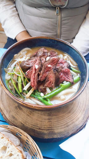 Read moreWe had a wonderful foods there. The Miso ramen with beef (19eur) was good enough with a beef broth, udon noodle and mushrooms. My mom, we are Korean, loved it. I took a dish of thick grilled pork belly with a special curry flavor sauce(23eur), which was also very good. I especially loved the balance of the sauce - flavor/scent of curry and cilantro. (* I don't know the real name of the menu since it was written in French, but the server there was kind enough to...