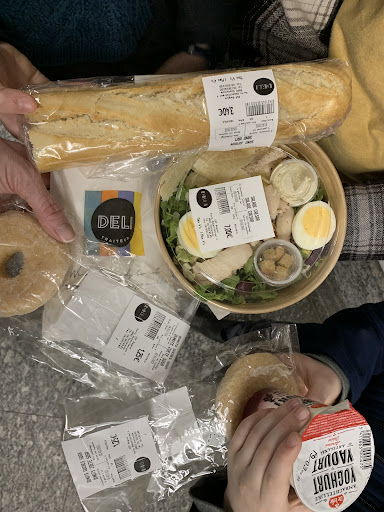 They had a decent selection of pastries, pre-made sandwiches, pasta salads, yogurt, fruit cups / fresh fruits, and other pre made dishes. Lots of drinks as well. They had hot soup available which would be lovely on cold days. (Which are frequent in Belgium of course.)