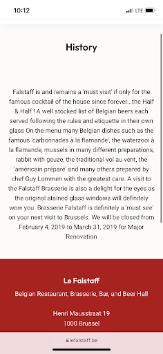 Read moreHello, we are a couple of students from Poland exploring Belgium. We are really into sightseeing but we have limited budget. We wanted to see this restaurant because of it's history and a Falstaff persona, an inspiration of other literary characters in Polish literature. We checked the prices beforehand. On the restaurant's web page we found a drink ,,half & half" that costs 4 euro. We decided to go inside, order it and have a look around. We were greeted by a very charming waiter. He was really nice and friendly. He even invited us to go to another restaurant where he could put us on the guest list. We were under very good impression so we decided to order another glass of the drink and spend some more time in the restaurant. When we wanted to pay we learned that the price is not 4 euro but 9 euro! We showed the waiter the menu on the page but we were told that the price went up because of the war in Ukraine. The waiter showed us a menu with a sticker on the previous price and handwritten new price... We are aware of the situation on the other side of our border but isn't 2 years long enough to change the prices at the website if you raise the price over 100% and you know that the visitors of your restaurant are mainly tourists that may have problems with foreign languages? It looks very shady and unfairly. We paid 36 euro instead of expected 16… We went out confused and realised that we didn't even receive a bill. Very...