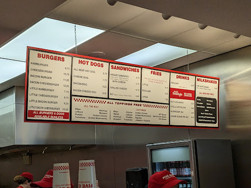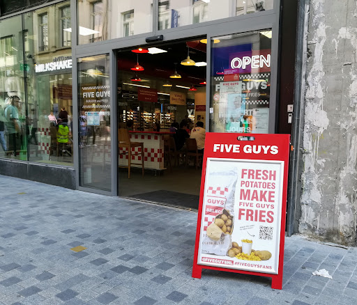 Read moreI have personally tried all the major hamburger chains (Mc Donald's, Burger King, Quick, ... ). I consider Five Guys by far to offer the best quality when it comes to burgers and fries. A nice addition is you can choose from a large amount of toppings and sauces and they are included in the price. The downside of Five Guys: there is no menu option, so even when you order a burger, fries and a drink the bill will tick up. Current price at the date of this review was € 9,25 for a regular burger with toppings included and € 5,50 for a medium portion of French fries. Then you still have to add a drink (you don't need to) and roughly you're looking to at least € 18 for a (basic) full hamburger meal. Not cheap, and this is for the cheapest full meal option (burger, fries and a drink). Way more than for a regular menu option at the other hamburger chain restaurants. Although the French fries were tasty (the potatoes actually come from the Netherlands), there was a lot of mush in the bag. Summarized: good quality, but slightly overpriced and due to the lack of a menu option the bill ticks up. When it comes to interior: tastes differ but it ain't exactly cosy with the bright red overtones. No diner style booths either, feels more like a factory cafeteria than an...