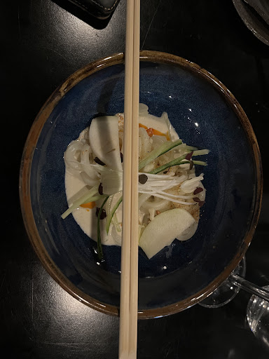 Food: 4/10: no wow effect Drinks: 6/10: cocktail was exceptionally good. Regarding wine: we asked for non sour eventually got a really sour wine. After the change is was fine, but it was just enough for two glasses tasting for acceptance and eventually for one glass of full serving. Then when was brought 3 bottle, it was poured in the same glass for tasting. Service: 7/10 good but it took 2h 40 mins for 5 courses. Too long from my experience. Atmosphere: 5/10: very small place, too loud for me. Value for money: 3/10: overpriced = overall bill was at the same level of one start michelin...