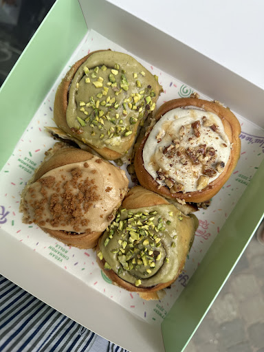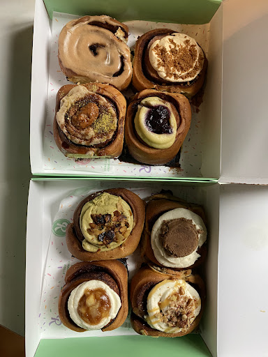 Read moreItâs been long time since I posted about a food place, but I had to because these cinnamon rolls are heavenly. They were delicious!! We tried their lavender lime which was perfect not too strong lavender and good bit of lime, the Bischoff, the cookie dough, and the original. The dough was perfect texture and the variety of toppings are amazing. I will definitely be coming back to try more of their toppings! And the fact they are vegan is a major win! As a vegan I find it hard at times to find specific items usually good desserts. These cinnamon rolls are a...