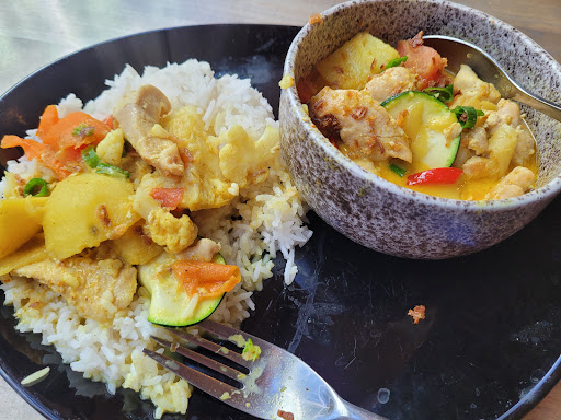 Read moreMalheureusement pas top alors qu'on sent le potentiel. Mais je suis sévère parce qu'on a des doutes sur la motivation principale (et que la cuisine Thaï est ma préférée - j'y vais un mois tous les ans). Salade de boeuf à la menthe à 22 euros, 6 petites languettes de bœuf, sans menthe (trop chère m'a t'on dit quand j'ai fait la remarque), pas d'herbes fraîches en général (pour la cuisine Thaï, c'est comme des pâtes sans fromage), et pas de riz (ce qui est normal pour une salade, mais à ce prix et présentée en plat principal on en attendrait). Encore 4 euro pour le riz... Curry rouge de mon ami excellent (pour les connaisseurs, c'est assez facile à faire à l'avance et presque inratable) mais manquait aussi d'ingredients typiques. Dame (patronne ? ) assez sympathique, fait tout toute seule (du moins, le jour où nous y sommes allés), de l'accueil à l'addition, en passant par la cuisine, le tout en courant. Donc ne soyez pas pressés. Mais il est possible que le personnel était absent ce jour-là . En conclusion, si la base est bonne, le tout manque de générosité et d'amour. À réessayer dans quelques temps pour voir si l'on est juste tombés un...