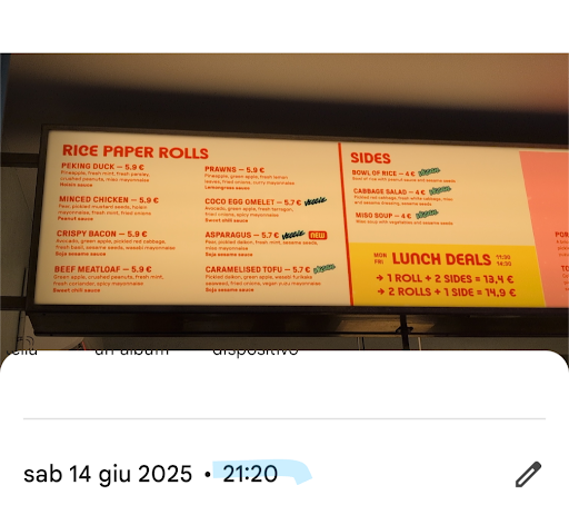 Luckily, at least we managed to get some leftovers of the day (how generous) because they couldn't make new rolls anymore as they were already closing, but when we asked to sit outside, they refused, claiming again they were closing. It was 21:28 when we left with our rolls in hand in a take away box. Meanwhile, other customers were still sitting outside, eating. So what’s the logic here? Selective closing based on vibes? This is really ridiculous, why just not say that we had to leave by 22 as they would close?