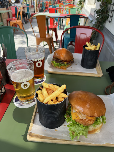 a very nice place to discover. when there's sun, choose the terrasse (sun until 7PM or 8PM. inside it's more a pub. nice decoration with painting of Brussels buildings. good place for cocktails and beers. they have on a regulary base new beers to taste. ask the barman, he knows about it. food: burgers, pasta... only sad point: for all the burgers possibilities, you only have 1 veggie. why not just give all the possibilities and after you choose beef, chicken,...