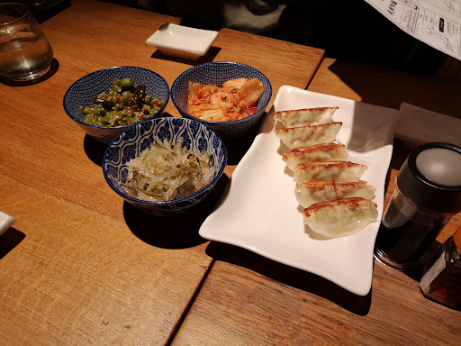 Les gyozas ne sont pas faits maison, vous pouvez les trouver surgelés dans tous les supermarchés asiatiques; Les ramen ne ressemblent à rien de ce que j'ai pu goûter à Tokyo ou dans de vrais restaurants japonais à Bruxelles: le bouillon est flotteux et un peu fade, les garnitures sont rares et parfois pas très cuites. Dans l'ensemble, ce n'est rien de plus qu'une soupe de nouilles;