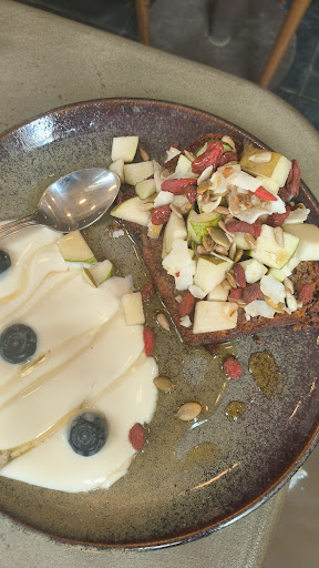 Read moreSadly, I can’t recommend this place AT ALL. Although the service is good and the location is nice, we had quite a bad time there. The food is NOT worth the prices!!! (Especially if you go on the weekend where everything is around 4€ more?!???) Firstly, their “brioche” that they serve the scrambled eggs on, was very hard and dry (on all 4 portions we ordered). The salmon on the eggs royal didn’t seem high quality. In general the food tastes bland and boring and is not worth spending those amounts of money on. The drinks were alright. The juices seemed fresh. However, their iced chai was an absolute catastrophe as it tasted like literally nothing. I kindly asked if there could be some syrup added to it, which the server did, but that didn’t help either. That is not a drink that you can confidently serve to your customers and have them pay 6,50€. We were looking forward to a nice breakfast in a beautiful spot and were disappointed again and again. Usually we’re very forgiving guests and understand that mistakes happen, etc. but we even talked to the manager about our issues when he waited our table but he didn’t really seem to care. I don’t think this place is about giving you a nice breakfast sandwich experience, but about aesthetics, posting and making money.