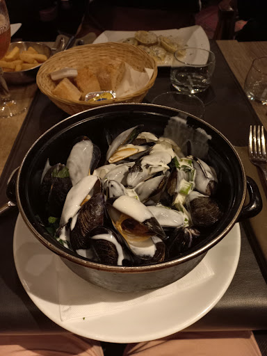 One of the worst restaurant experiences I had in a long time. The table was not cleaned by the staff, although it was obviously dirty. We got the menu, but no wine menu. (Not a actual problem, but not very thoughtful either.) However it took the waiter ages to get it. The bottle of white wine, I eventually ordered, didn't come in a cooler and was placed on the heater next to me, since the table was full with the first course. (wtf) The Moules-frites came without spoons. seriously... and when I asked for spoons the waiter didn't bring them.