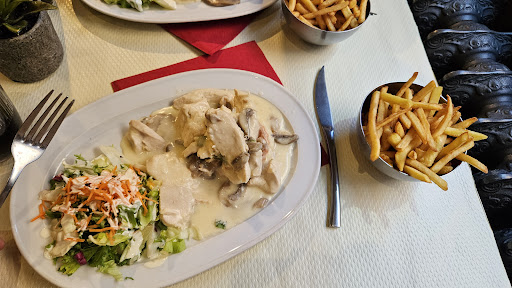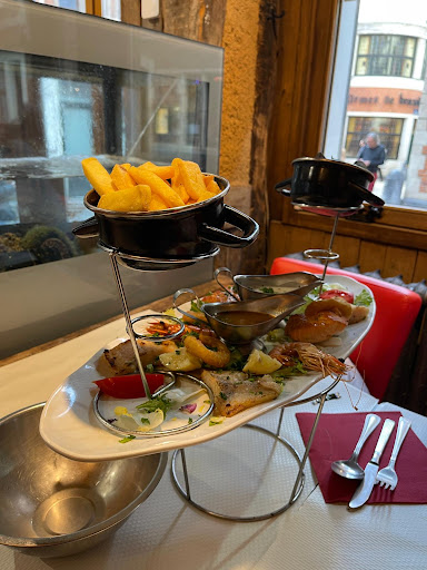 First off all - tbh the staff was really nice , trying to help tourist and make it a great experience, trying to help with language barrier and did their best to communicate. The Restaurant itself was really nice and the open fire was really cosy, the paper tablecloth ... a new experience - but oke if it's cheaper with the economy right now, understandable. At first we were really happy to find a nice place after a long day waking around the City. --- The food Starters: 2 smal croquettes - 19 Euro no comment 5 pieces of Shrimp "grilled with garlic" - a little overdone and chewy , the shell seemed really garlicy but the shrimp/flesh itself rather tasteless- 25 Euro Mains Chickenbreast with "Estragon" 4 small pieces of chicken with a big leave of lettuce and half a shredded carrot with 12 fries for 25 € ... the chicken was killed 4 times and ressuracted and then grilled again - to make it less dry , it was served with a "sauce" ( heavy cream with 4pieces of mushrooms). - the disappoinment was really big tbh - but the mistake is on me - it was my first meal today and I just was hungry and at one point I just didn't care anymore, wanted to finish and just leave. "Beef stew " 25 Euro The meat really long cooked, no need to chew ( tender and smooth oke , but almost dissolving - but mabye just a personal preference) - but the sauce was really disgusting onions flour and instant powder - it tasted absolutely like nothing , no salt no pepper no depth no flavour. - half of it was sent back Steak - 27 Euro Medium ordered - seemed like it was only grilled on one side. In the middle raw and on the edges almost cremated - comment on the dish from my friend " It's a shame that the animal had to die for that". - half of it was sent back 3 Person 153 Euro Don't know if this area is only for tourists or anything like that - I dont have much experiece dining in belgium at all. !!! And to be fair our mistake - we really just did not have the strength and willpower to argue and complain we just wanted to leave and get over with. A experince once in a lifetime and won't be back there. Food is always influenced by many things and taste is always diffrent. But this night was just a disappiontment on another level 😢 But please make your own...