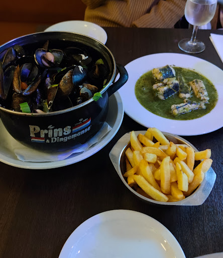 Wait staff was brash from start. At end of meal the waitress asked us to use a calculator to add up our payments for her which we did. She proceeded to get frustrated, walk off and return with her own calculator. When my friend pointed out to her that it was simple (we had all ordered the same 24 euro mussels x 5) the waitress proceeded to put her hand centimeters from my the friend's face and shush her repeatedly .