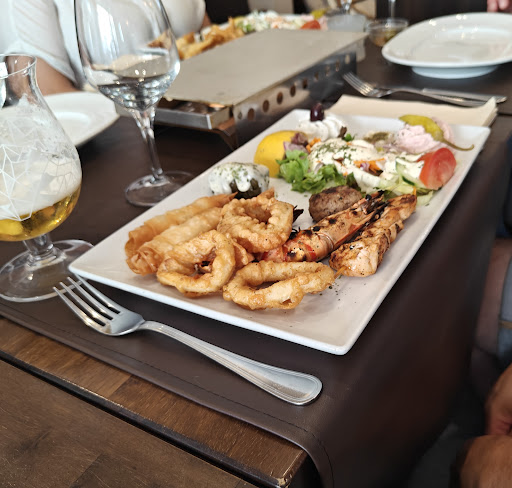 Une fois installé, je me laisse guider par une cuisine généreuse et authentique. Les mezzés se succèdent avec finesse : les petits os, tendres et délicatement épicés, éveillent mes papilles ; le poisson grillé, parfaitement saisi, fond en bouche ; quant aux plats grecs traditionnels, ils me transportent aussitôt au cœur de la Méditerranée. Chaque assiette est servie avec soin, dans des portions équilibrées, et surtout avec ce souci du détail qui fait toute la différence.