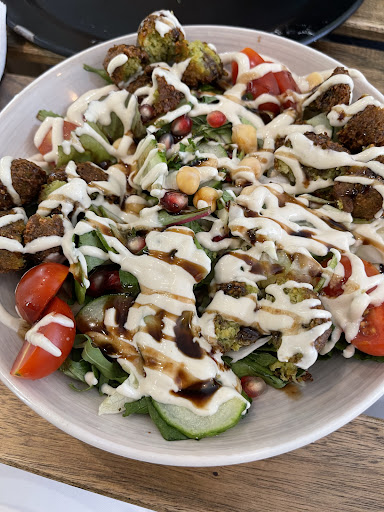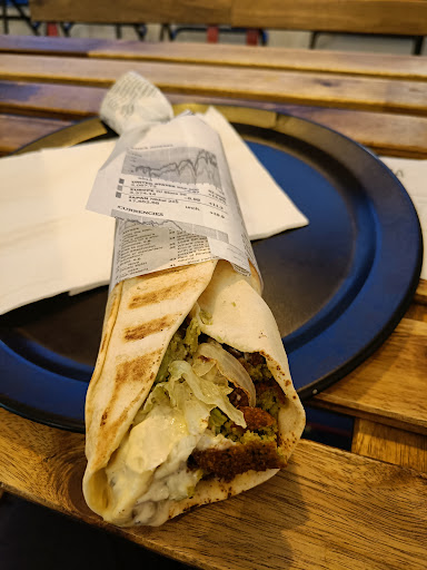 Read moreNice guys working there. That's my only compliment. Have been there a few times. Totally inconsistent quality though. Overpriced as well. And way too slow. Also, hygiene is important.. especially lately. Bathroom and tables were slimy. Can get a much tastier pita for 5 euros on rue de Fromage (Greek street). Haloumi luke warm and bland often. Falafel taste old or dry. Sometimes they would have great pomegranate accents or other seasoning, but usually not. Ate there out of emergency after the first time. Next time I'll just fast.