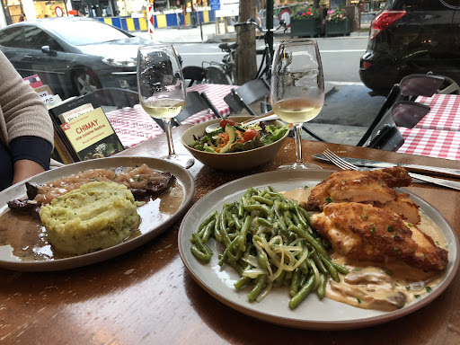 We ordered some wine as we aren’t big beer drinkers but they have an extensive beer menu for fans. We started with the cheese croquettes which were beautifully fried and creamy. We did the hanger steak with potato purée and chicken cordon bleu with veggies for our entrees and were impressed with both. The meats were cooked perfectly and the sauces complimented everything so nicely. Again the service was on point throughout our meal. Prices were reasonable for the quality and the location. If we were back in Brussels we would not hesitate to...