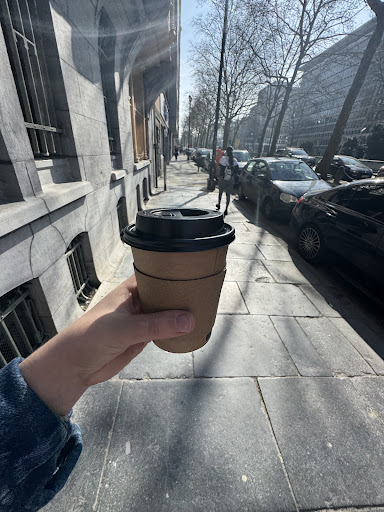 The ambiance is incredibly cozy and reflects a blend of Belgian charm and modern comfort. Whether you're looking for a quiet spot to relax, read, or catch up on some work, or you just want to enjoy a good coffee while people-watching, this café has it all. There’s outdoor seating right by the windows, which offers a lovely view and a calm atmosphere for enjoying the city vibe.