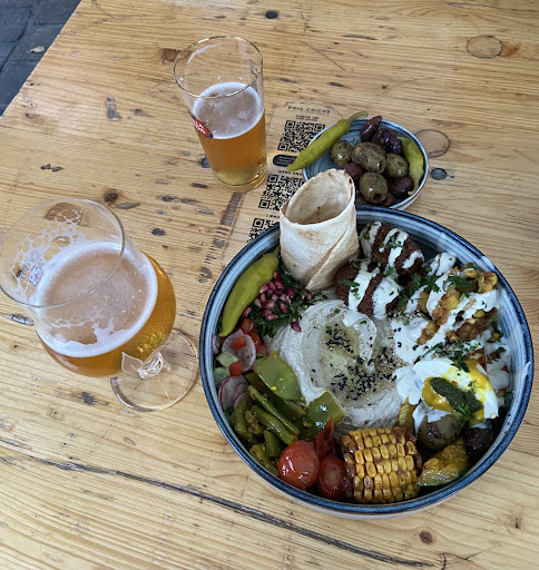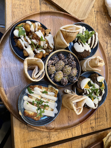 Read moreCame here on a Saturday morning and we were only given a brunch menu, apparently you can't have anything other than a mixed platter or an oven dish on a weekend morning. Too bad as we would have wanted to try several items on their menu. We were welcomed by a not-so-welcoming staff member and ordered two mixed platters, which look vegan on their menu (among the items that make up the platter there aren't any which are not vegan). However, when we asked just to make sure they told us there was an egg, which is not written on the menu... Luckily we asked, but wouldn't it be better to just write it on the menu?? After we ordered and were charged âŹ1.50 for tap water, we waited over 35' for our food to be ready. Where do I even start? ALL the food was cold, except for roasted cowliflower (making up 1/10 of the platter). Some veggies were pre-cooked but served cold!!! Why wouldn't you at least warm them up a bit? Throughout our meal we saw staff members picking up food from the fridge and just putting it on the plates... But the worst part is, if you are called Chickpeas, then I would expect your hummus and falafel to be fenomenal, but they were bland and taste-less!!!!! We left feeling disappointed and hungry. There is nothing middle eastern about this place. âŹ15 for a fridge-cold plate of below-average tasting food is not worth it... Honestly, you'd be better off cooking some store-bought...