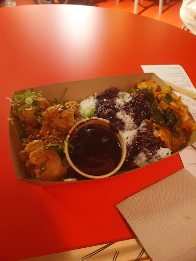 Read moreThis little Korean restaurant inside of the Brussels Central station is one that offers a visually cozy place to take your mind away from the fact that you are in a train station with its well thought out interior. Itâs an okay spot to eat once in a while when you donât feel like cooking in the evening before you have to take your train. I say âokayâ because this place doesnât offer a variety of food options and the Korean Fried Chicken tastes like 70% fried dough and 30% chicken. It had a lot of flavor but compared to other Korean Fried Chicken places in Brussels, this one, based on the lack of options and chicken/dough ratio, isnât amongst the best. The proportions are okay but a bit pricey for the quality of the âfried chickenâ that you get. The service is fast and the staff is very young, but friendly. They also regularly clean the tables which is personally a big plus compared to the other places to eat in inside...