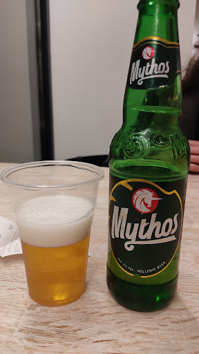 I got a mixed corn Pita bread wrap with chicken and pork and my wife got a classic Pita bread chicken wrap. Fries with metsovoni grated cheese and a portion of fried halloumi. Got a greek beer (Mythos) and my wife asked for an orange juice, but got a Fanta instead (maybe a misunderstanding?). The wraps were pretty good, very well seasoned. The fries were good as well. The metsovoni tasted like Italian provolone, meaning it was really good. It was the first time I've ever heard about the fried halloumi and overall it was okay. I found it a little bit dry, but with proper saucing and the honey that goes on top of it, tastes better.