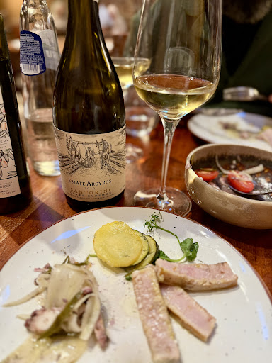 Strofilia is an amazing place in the Brussels city centre. The dishes are simple but the quality of the products is just great. It is basically an experience of the Greek tastes in Brussels that brings u directly down in the south of Europe. The food is amazing, well served, u must share it with the other dining companions in order to try everything, to enjoy the company and to share tastes, thoughts, moments. The restaurant is a Michelin restaurant, however is far away from those fancy, conceited and expensive environment, everything around u give the idea of a simple place, where to relax for the lunch time or the dinner time. At the end u will not get betrayed by Strofilia, the prices are totally fair and (in my humble opinion) not expensive at all for the experience u are gonna have. For any doubts there are always the waitress, amazing landlords the will guide u among the experience like Virgilio did with Dante in the divina commedia, u will never feel alone, u will never face the failure in taking something u don't like, u will eat the right amount of food and u will pay what is right. What else to say? I'm sorry but do not take a lot of pictures... I ate everything. Enjoy...