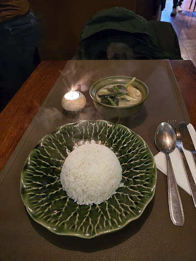 It was ok. After reading plenty of great reviews I was convinced that this will be a great experience in food and restaurant. We have ordered a pad thai (9âŹ) and a green curry with chicken (11âŹ). The portions for the green curry was ok but the pad thai plate was super tiny and only two king prawns on it. The green curry did not really have much of a variety of vegetables the main ingredient was coconut cream and bamboo shoots lots of them. It was spicy but I like spicy. The pad thai was rather sad the main ingredient besides the noodles were bean sprouts and eggs. We've been to Thailand and it was nothing alike. The team seems very friendly and helpful. The place is super small but cosy. Payment only with cash. It was ok but I'll go somewhere...