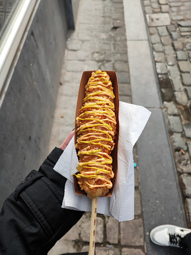 Ordered a corn dog with cheese filling and mustard. The portion was quite big and the taste was quite okay. However, there are only 2 tables which most of the times are occupied by tourists that just want to sit somewhere. For me at least, it was impossible to eat it on the go. Despite all the nice comments about the staff, the girl at the cash register seemed so annoyed and didn't even bother to say "hi" when we entered. We even asked her if it would be possible to tell all these random people to sit somewhere else so we can eat (since they were not customers) but she refused. It's a decent place but needs a lot of...