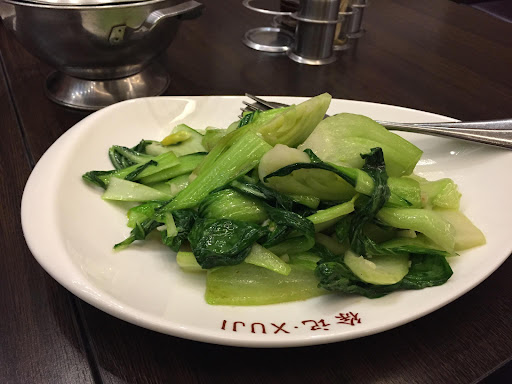 Read moreIk ben al jaren op zoek naar een authentiek Chinees restaurant waar je iets anders te eten krijgt dan kroepoek en van alles, het doet er eigenlijk niet toe wat, in zoetzure saus. De ‘met lijst of flietjes?’ vraag is trouwens ook niet aan mij besteed. Je voelt mij al aankomen, ik heb prijs. Xu Ji is een restaurant waar de Belgische klanten in de minderheid zijn. Hier komen Chinezen eten als hun eigen restaurant gesloten is. Het ligt in het Brusselse Azian town dat tussen de Sint-Katelijnestraat en de Jules Van Praetstraat als Chinese kool groeit. Phuong Ngoc, één van de diensters, is geboren en getogen in Oostende en het is wel grappig om hier in het Nederlands met een Oostends accent bediend te worden. Zij serveert ons als amuse bouche een kommetje met gekruide zonnepitten en gebrande pindanoten. Vooraan op de kaart staan de obligate genummerde Chinese gerechten en menu’s. Het is echter achteraan dat we the right stuff vinden. De authentieke (ongenummerde!) gerechten staan in het Chinees geschreven, gelukkig met een Franse vertaling. We beginnen met een kleine traditionele Wan Tan soep (€4). In deze bouillon met echte paksoi (geen Chinese kool), Chinese champignons en vreemdsoortige broodkorstjes zitten een vijftal ravioli gevuld met varkensvlees. De grote versie (€7) is zeker een maaltijd op zich. Vervolgens waag ik mij samen met Madame gastronautgewijs aan een reeks onbekende en soms zelfs bizarre gerechten: in gesuikerde vinaigrette gemarineerde kippenpoten zonder been (€6,50), Kangong groenten (€9,50), gestoomd varkensbloed met gember en bieslook (€9,80), dunne plakjes varkensoren Waiko (€ 7,60), Qing tian pannenkoek (€3,80) en gerookt pikant spek met bamboe (€9,80). Sommige gerechten ga ik zeker nog eens eten, van andere ben ik blij dat ik ze eens heb geprobeerd. De Qing tian pannenkoek is eigenlijk een eierkoek gevuld met gedroogde aromatische kruiden. Wat vettig maar uiterst lekker. De Kangong groenten lijken van ver op groene bonen maar ze zijn hol en hebben een unieke smaak. De malse Chinese bamboe heeft een heel zachte smaak die mooi contrasteert met het gerookte pikante spek. Het varkensbloed is gestold en wordt in dikke plakken geserveerd. Het smaakt ook zacht, maar hier geeft de scherpe gember het gerecht een boost. In de varkensoren zitten harde stukjes en dat geeft niet altijd een even aangenaam mondgevoel. De kippenpoten zonder been zijn eigenlijk gewoon wat glibberig vel, waardoor het psychologisch wat moeilijk is om ze door te slikken. We sluiten deze culinaire expeditie af met geflambeerde beignets (€6). Op een bord liggen vier grote bananenbeignets en één mega vanille-ijsbeignet. Ze worden aan tafel in de fik gestoken. Eén portie was meer dan voldoende geweest. Bij het drinken van een chrysantenthee (€1,80) maken wel al plannen om volgende keer de gesauteerde eendentongen, de gemarineerde algenplakjes, de gefrituurde varkensdarmen en de duizendjarige eieren uit...