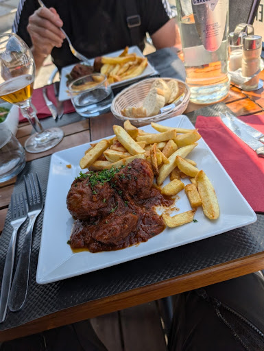 We had lunch here without planning the visit in advance. We were welcomed and had a choice of table. We opted for the verandah as the weather was warm. The restaurant has a good location in the centre of the village and looks out over the Place D’Eglise. There was a good selection of food on the lunch menu. We chose Meatballs and it was a good choice. Meaty and flavoursome with a herby and garlic flavoured sauce. For drinks, we had water and low alcohol beer. Service was attentive and friendly. We were travelling on motorcycles so parking was relatively straightforward in the shade outside the Mairie. Overall our stay was around 1 hour. Unfortunately we had to refuse the complimentary post meal liqueur as we were riding on. We were very fortunate to find a quality restaurant in an unplanned stop for lunch....