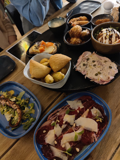 Read moreBelle découverte !! Nous y sommes allés à 4 (2 couples d'amis), un samedi soir à la dernière minute. L'accueil était top et le service décontracté. On s'y est senti tout de suite bien. Le concept est simple : service au choix entre 3, 5 et 10 tapas. À l'ardoise, on retrouve également 5-6 assiettes de pâtes (vongoles, gorgonzola/noix, chair à saucisse, truffe, carbonara, etc) et c'est tout ! Il n'en faut pas plus pour une soirée réussie. Nous avons pris 10 tapas à partager à 4. Nous avons eu, entre autres, du calamar grillé, de la burata, vitello tonnato, un carpaccio de bœuf, bruschetta et des petites boulettes à la sauce tomate. Ensuite, nous avons pris 2 assiettes de pâtes que nous avons également partagé à 4. Très bons conseils du serveur pour la quantité de tapas et de plats. Le choix des boissons est varié. L'emplacement est idéal pour sortir dans Charleroi ensuite. Nous terminons la soirée pour 36€ par personne en ayant mangé à notre faim, pris un apéro chacun et une bouteille de vin. On...