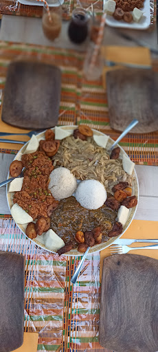 Les plats préparés maison par Madame, avec des produits parfois directement importés d'Afrique, étaient succulents. Nous avons découvert de nouvelles saveurs et nous n'avons pas été déçus ! C'est un 100% satisfaits pour nous 6 : une grande assiette avec 3 plats à partager + un plat végétarien + un plat sans porc. Tout était hyper bon !