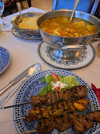 Pour le couscous royal et le pacha les brochettes de boeuf et kifta étaient très salées merguezs très séches et bouillon de légumes sans goût manque cruellement d'épices ! Même pas d'harisa proposé à part pour les amoureux du piquant ?