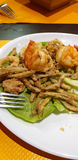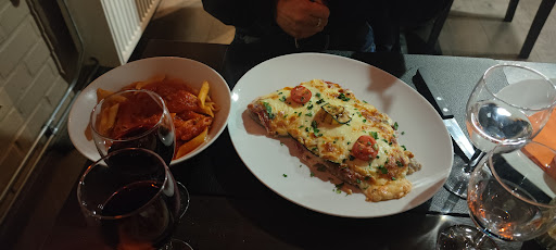 Repas: entrées correctes malgré des scampis tomates décevants (sauce tomates en boîte assaisonnée), ensuite deux pizzas, une calzonne et une 4 saison +suppléments et 5 brochettes dagneau. La calzonne contenait beaucoup d'eau, les brochettes d'agneau puaient le mouton.